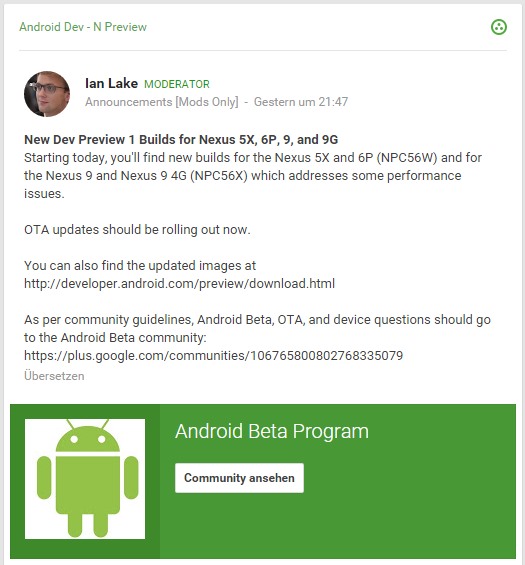Gestern Abend hat Google damit begonnen, ein Update für die Android N Developer Preview auszurollen – allerdings handelt es sich dabei offenbar nicht um eines der monatlichen Updates, die versprochen wurden, sondern um einen Performance-Fix.