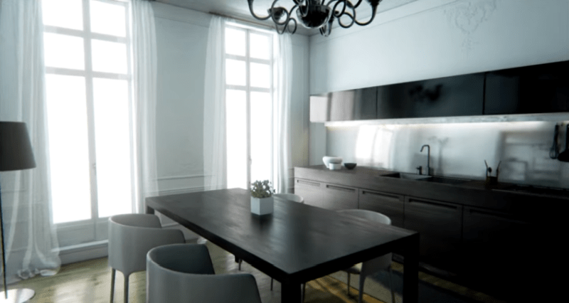 Nein. Das ist kein Foto aus einem Katalog. Das ist auch kein klassisches, statisches Renderbild. Das ist ein pariser Apartment, das von Dereau Bernoit komplett in der Unreal Engine 4 gebaut wurde und live in dieser vorgeführt wird.